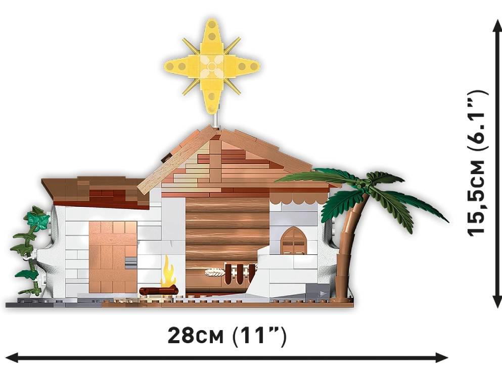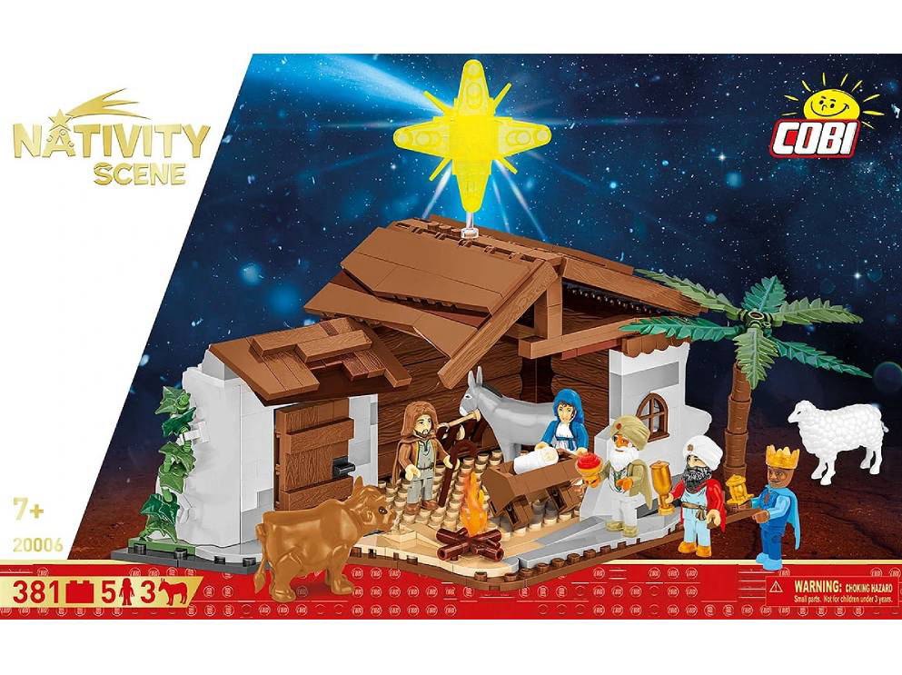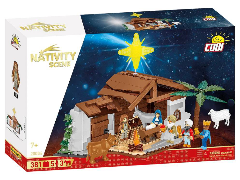 COBI jaslice od 381 dijelova karakteriziraju svi tradicionalni elementi. Iznad jaslica nalazi se betlehemska zvijezda koja vodi mudrace s Istoka. U rukama drže darove koje će dati novorođenom Kristu. Životinje kruže uokolo, uključujući vola, ovcu i magarca.U samoj štali nalazi se sveta obitelj: Josip, Marija i Isus. Set se preporučuje osobama starijim od 8 godina. Dimenzije: 28 cm x 15.5 cm. COBI kocke kompatibilne s LEGO kockama.