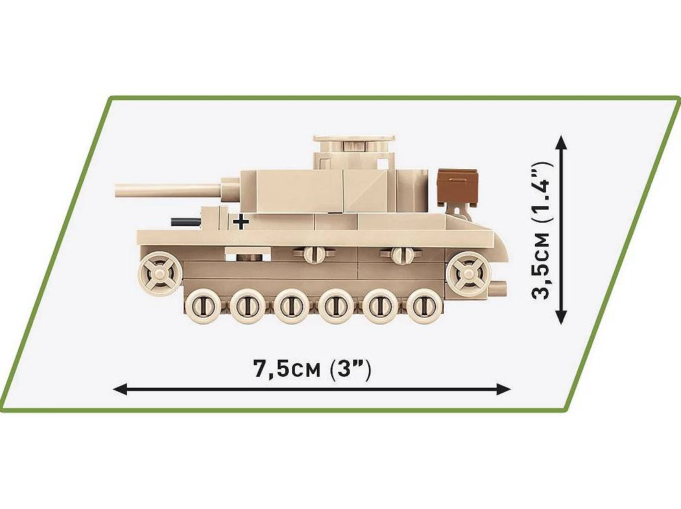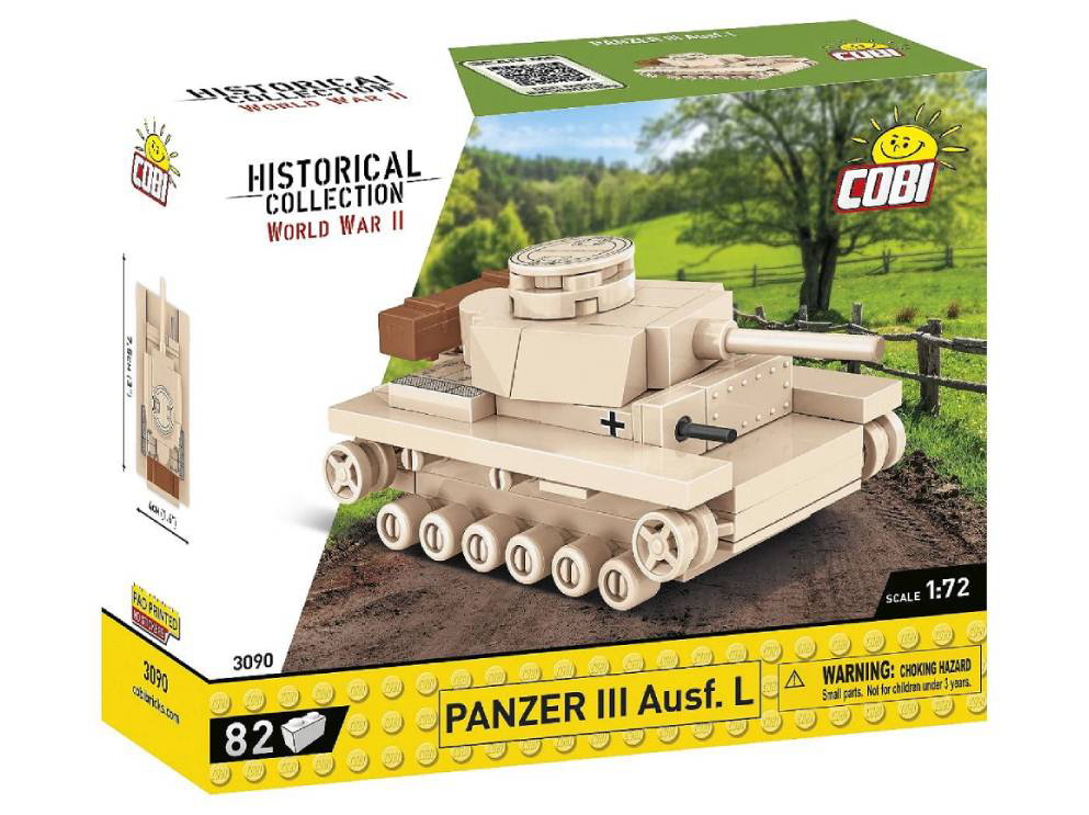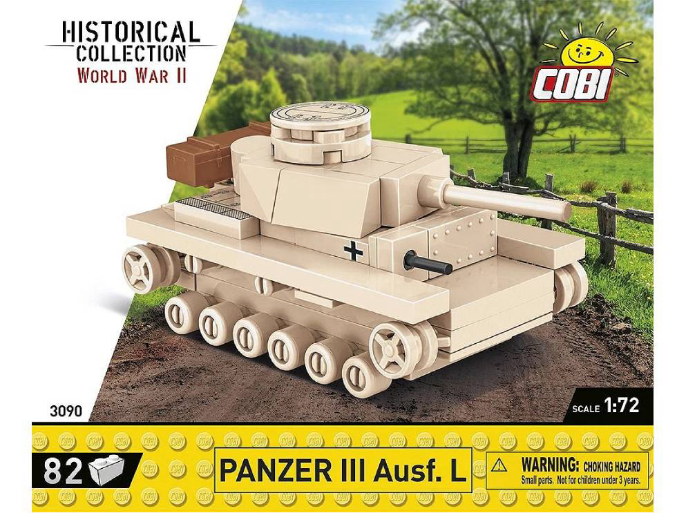 Panzerkampfwagen III bio je njemački srednji tenk iz Drugog svjetskog rata. Bio je to najnadograđeniji i najmodificiraniji model koji je služio u vojsci Trećeg Reicha. Bio je to iznimno dobro konstruiran tenk, korišten do samog kraja rata. Posada se sastojala od 5 ljudi, a tenk je sudjelovao u vojnim operacijama na svim europskim frontama, kao i u sjevernoj Africi. Mini-model dizajniran je u mjerilu 1:72 i sastoji se od 82 visokokvalitetnih dijelova. Set se preporučuje osobama starijim od 6 godina. Dimenzije: 7.5 cm x 4 cm x 3.5 cm. COBI kocke kompatibilne s LEGO kockama.
