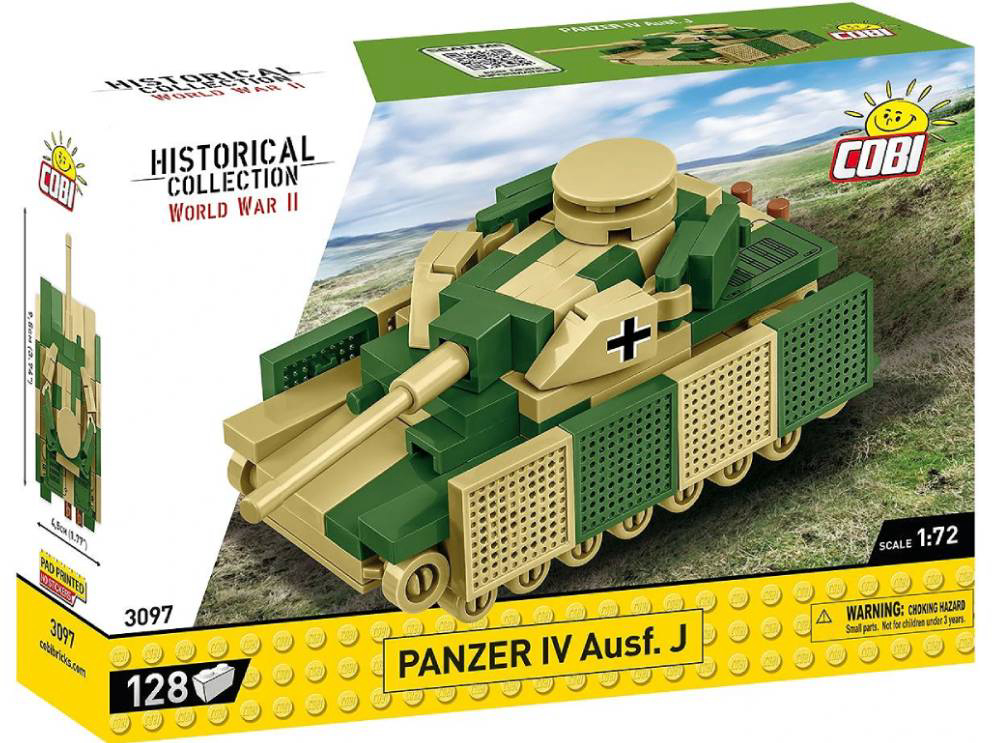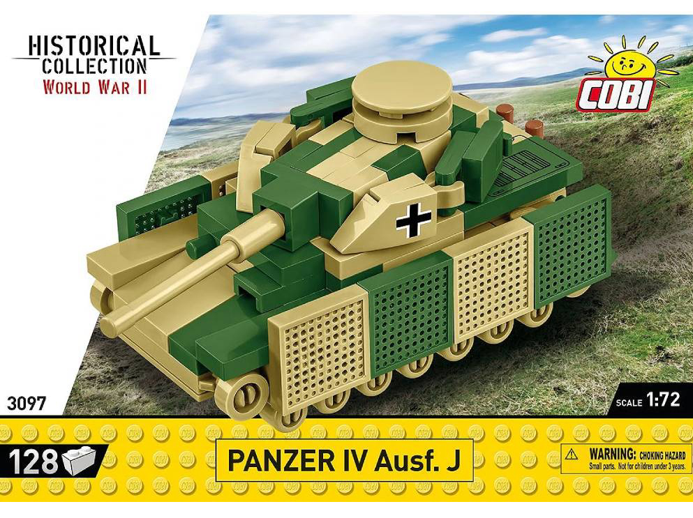 Panzerkampfwagen IV bio je njemački srednji tenk proizveden tijekom Drugog svjetskog rata. Bio je to jedno od najboljih oklopnih vozila tog razdoblja. Tijekom cijelog razdoblja proizvodnje od 1938. do 1945., Panzer IV je imao status glavnog borbenog tenka. Do 1942. bio je najteži tenk Trećeg Reicha. Mini model dizajniran je u mjerilu 1:72 i sastoji se od 128 visokokvalitetnih dijelova. Set se preporučuje osobama starijim od 6 godina. Dimenzije: 9.5 cm x 4.5 x 4 cm. COBI kocke kompatibilne s LEGO kockama.