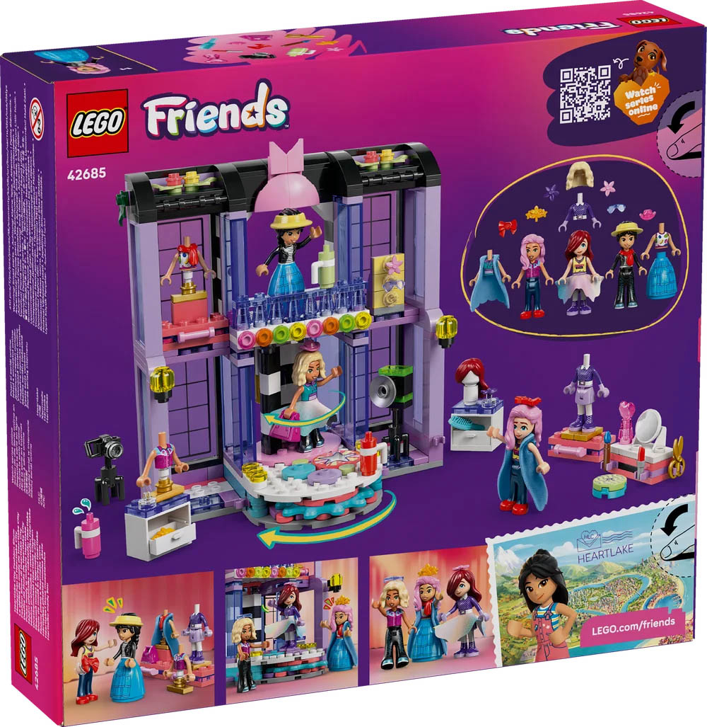 42685 LEGO Friends Modna revija u Heartlakeu. Inspirirajte mlade modne dizajnere od 7 godina i više da stvore svoju vlastitu čaroliju na pisti s LEGO Friends Modnom Revijom u Heartlakeu (42685). Djevojčice i dječaci mogu uživati u beskrajnoj igri dok stiliziraju outfit, biraju dodatke i pomažu likovima da prirede modnu reviju. Ovaj komplet prepun je slatkih detalja i dolazi s 3 mini lutke i puno odjeće za kombiniranje, uključujući suknju, kaput, šešire, traperice, sunčane naočale i torbicu. Nakon odabira odjeće i dodataka, djeca mogu postaviti LEGO Friends likove na rotirajuću platformu, spremne za njihovo veliko otkrivanje prije nego što krenu na modnu pistu. Komplet nudi mnogo kreativnih načina za igru s toaletnim stolićem, ogledalima, kamerama i još mnogo toga, kako bi se ponovno doživjela zabava pravog modnog showa. Ovaj komplet odličan je poklon za djevojčice i dječake koji vole igračke za oblačenje i modu. Djeca mogu uživati u intuitivnom slaganju uz aplikaciju LEGO Builder s alatima za približavanje i okretanje uz 3D upute u kojoj mogu pratiti napredak – sve iz aplikacije. Komplet ima 410 dijelova. Preporučena dob: 7 ili više godina. LEGO dijelova: 410