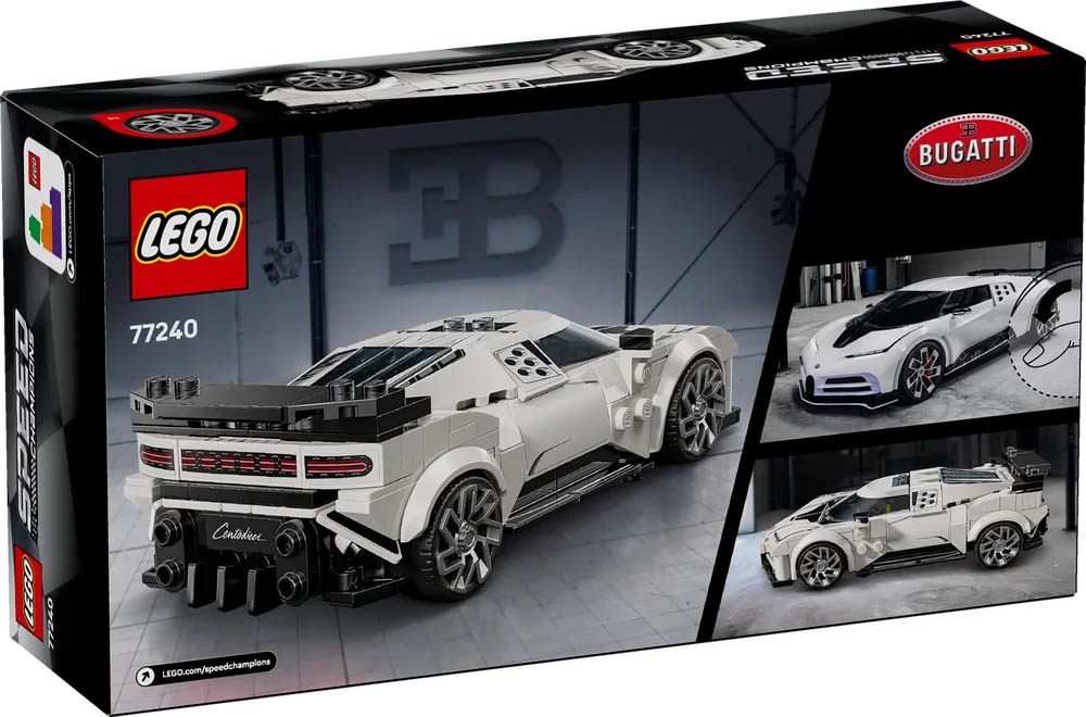77240 LEGO Speed Champions Hipersportski automobil Bugatti Centodieci. Otkrij jedan od najluksuznijih i najinovativnijih hipersportskih automobila na svijetu, Bugatti Centodieci, dizajniran u čast modelu Bugatti EB 110. Replika iz linije LEGO Speed Champions puna je detalja pravog vozila, a uz nju dobivaš i figuricuvozača za prikupljanje, slaganje, igru i izlaganje. Preporučena dob: 9 ili više godina. LEGO dijelova: 291