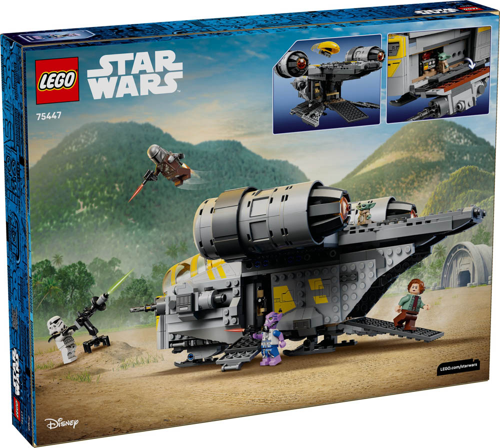 75447 LEGO Star Wars Razor Crest. Krenite u akcijske bitke u igrački za slaganje LEGO Star Wars Razor Crest (75447) za djecu. Sastavite legendarni svemirski brod jednakog dizajna i upečatljive boje kao u filmu Ratovi zvijezda: Mandalorijanac i Grogu. LEGO figurice Mandalorijanca, pukovnice Ward, Zeba Orreliosa i Imperial Stormtroopera te LEGO figurom Grogua lako će ući u vozilo iz Ratova zvijezda. Podignite staklo kabine, otvorite bočne ploče i pristupite odjeljku s motorom i spremištem pa spustite rampe. Vrhunski dar za dječake, djevojčice i sve obožavatelje filma Ratovi zvijezda: Mandalorijanac i Grogu od 10 godina i starije, komplet za slaganje uključuje i Stormtrooperov blaster Sentry E-Web, Mandalorijančev mlazni pogon i druge dodatke koji potiču na kreativnu igru. Djeca mogu samouvjereno slagati uz aplikaciju LEGO Builder s alatima za približavanje, okretanje 3D modela i praćenje napretka uz jednostavne digitalne upute. Komplet ima 930 dijelova. Preporučena dob: 10 ili više godina. LEGO dijelova: 930