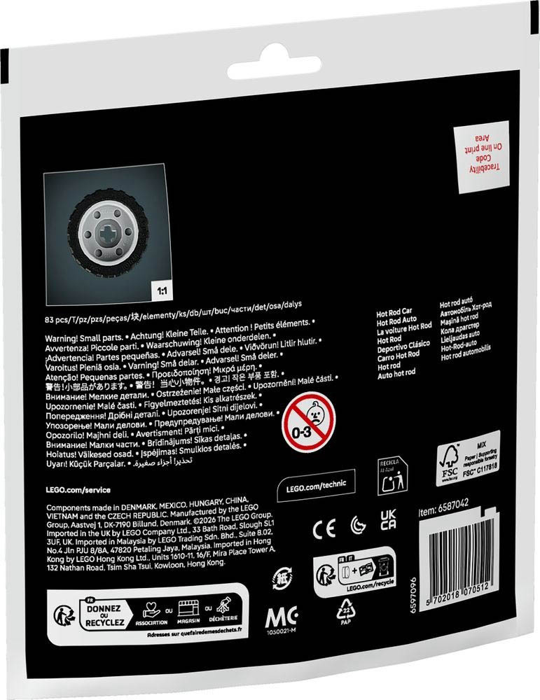 30735 LEGO Technic mini vrećica Hot Rod automobil. Iznenadite obožavatelje vozila modelom LEGO Technic Hot Rod automobil. Ima pomične klipove, robusne gume i upečatljivu kombinaciju boja nadahnutu legendarnim hot rodovima. Preporučena dob: 7 ili više godina. LEGO dijelova: 83
