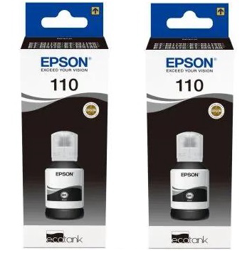 Komplet original tinti za Epson EcoTank M3180 M3170 M3140 M2170 M2140 M1180 M1170 M1140 M1120 M1100, set sadrži 2 boje: 2x110 XL crne bočice su od 120ml. 2 Colour Black Multipack C13T03P14A
