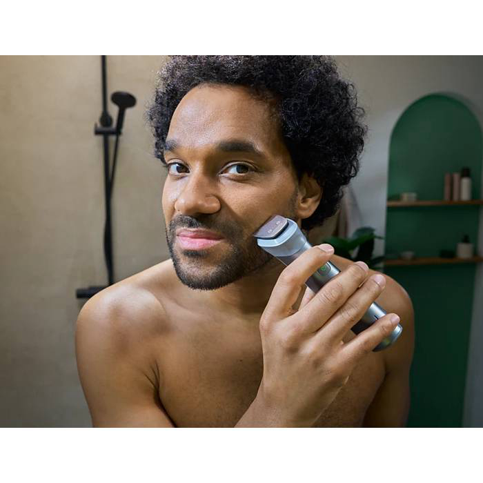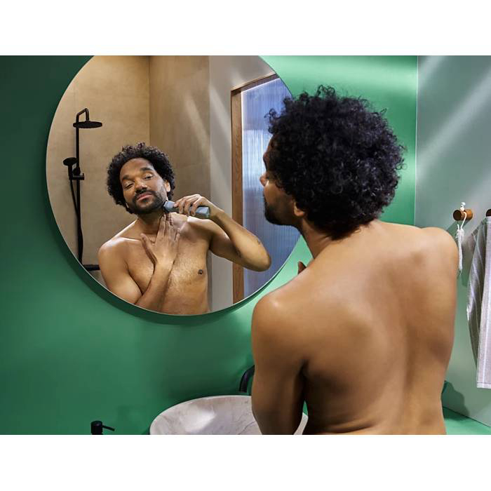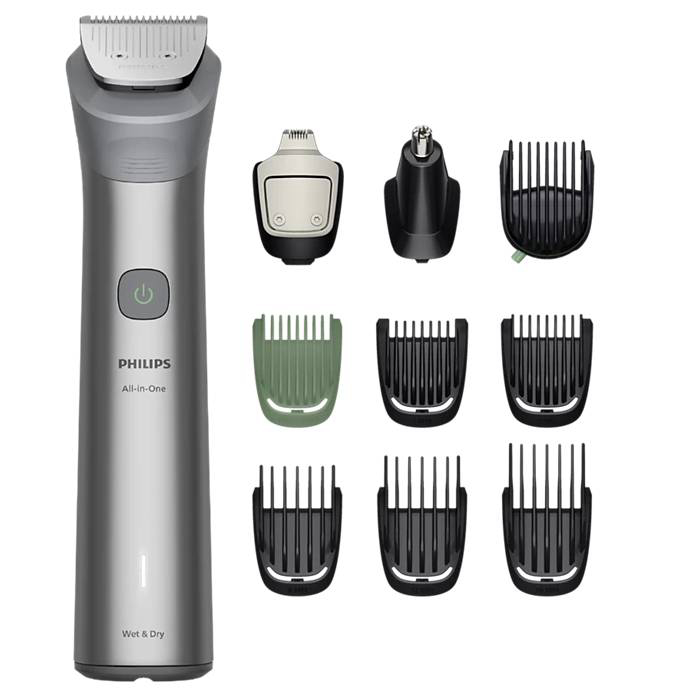 Višenamjenski trimer ima 10 kvalitetnih nastavaka za lice, glavu i tijelo, uključujući oštrice koje se same oštre i koje ostaju oštre kao prvog dana, bez potrebe za podmazivanjem, za dugotrajne performanse. Trimer ima 10 nastavaka za podrezivanje i oblikovanje dlačica na licu, skraćivanje kose i uređivanje dlačica na tijelu, tako da pokriva sve vaše potrebe. Tehnologija BeardSense skenira gustoću brade 125 puta u sekundi i pojačava snagu u gušćim područjima kako biste postigli najbolje rezultate. Sustav s više češljeva za trimer omogućuje vam izbor postavki duljine od 0,5 mm do 16 mm za jednostavno održavanje frizure kod kuće. Višenamjenski trimer osmišljen je za uklanjanje neželjenih dlačica u nosu i ušima na nježan i ugodan način, bez porezotina.