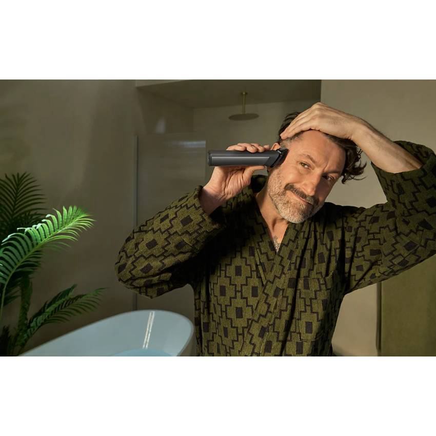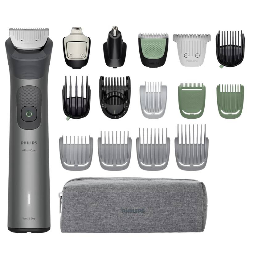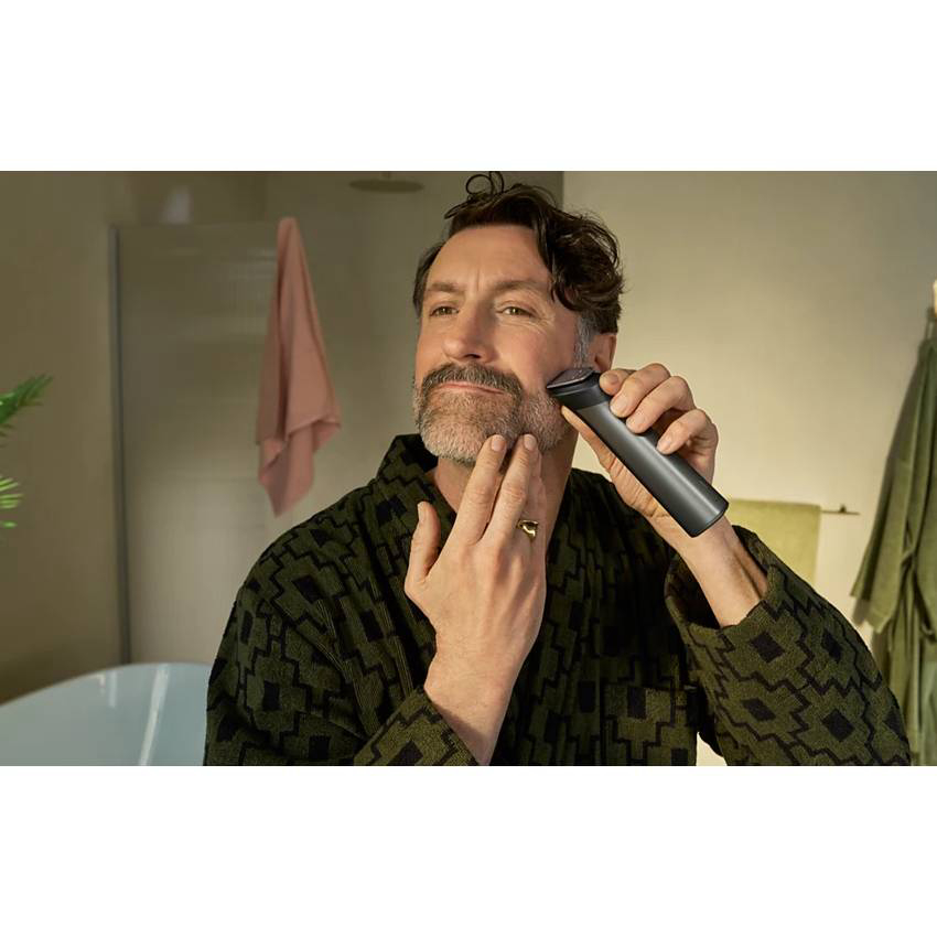 Ovaj trimer All-in-One pruža svestranost i preciznost uz 17 kvalitetnih nastavaka za lice, glavu i tijelo. Oštrice koje se same oštre ostaju oštre kao prvog dana, a vrhunski precizni češalj omogućuje vam da postignete izgled i stil koji želite. Trimer ima 17 nastavaka za podrezivanje i oblikovanje dlačica na licu, skraćivanje kose i uređivanje dlačica na tijelu, tako da pokriva sve vaše potrebe. Vrhunski precizni češalj s 11 postavki duljine od 1 do 3 mm u koracima od 0,2 mm omogućuje maksimalnu preciznost i podrezivanje na točno onu duljinu koju želite za savršen izgled. Tehnologija BeardSense skenira gustoću brade 125 puta u sekundi i pojačava snagu u gušćim područjima kako biste postigli najbolje rezultate. Višenamjenski trimer osmišljen je za uklanjanje neželjenih dlačica u nosu i ušima na nježan i ugodan način, bez porezotina.