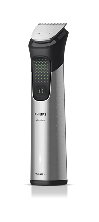 Postignite prepoznatljiv izgled s ovim vrhunskim kompletom za lice, glavu i tijelo. Ovaj jedinstveni komplet Philips najnaprednijeg robusnog trimera s oštricom OneBlade pruža preciznost i svestranost kako biste postigli izgled koji želite. Trimer ima 20 nastavaka za podrezivanje i oblikovanje dlačica na licu, skraćivanje kose i uređivanje dlačica na tijelu, tako da pokriva sve vaše potrebe. Brzi rezač trimera prolazi čak i kroz najdulje dlačice, a premaz za klizanje i zaobljeni vrhovi štite vašu kožu, tako da možete udobno oblikovati i brijati bradu. Tehnologija BeardSense skenira gustoću brade 125 puta u sekundi i pojačava snagu u gušćim područjima kako biste postigli najbolje rezultate. Izdržljiva litijska baterija omogućuje do 120 minuta kontinuiranog podrezivanja uz mogućnost brzog punjenja od 5 minuta.