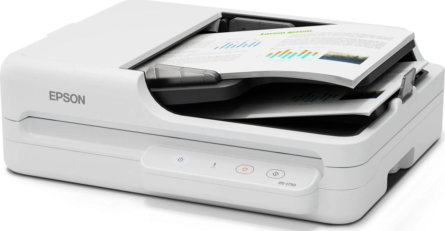 WorkForce DS-1730, kompaktni plošni skener za male tvrtke i kućne urede. DS-1730 je savršeno poslovno rješenje za korisnike koji traže plošni skener koji uravnotežuje cjenovnu pristupačnost s nevjerojatnim performansama. Ovaj skener pruža pouzdanu i dosljednu kvalitetu te ispunjava profesionalne standarde bez premašivanja proračunskih ograničenja. Zahvaljujući jednostavnom, nenametljivom dizajnu i kompaktnim dimenzijama, DS-1730 osnažuje korisnike u postizanju profesionalnih rezultata. Flatbed skener, Optička razlučivost (ADF) 600 dpi x 600 dpi (vodoravno x uspravno), Razlučivost skeniranja 1.200 dpi x 1.200 dpi (vodoravno x uspravno), CIS (kontaktni senzor slike), ReadyScan LED tehnologija, Brzina skeniranja: Monokrom:30 Stranica/min - U boji:30 Stranica/min , Razlučivost: 200 / 300 dpi, Monokrom:60 slika/min - U boji:60 slika/min , Razlučivost: 200 / 300 dpi. Kapacitet postavljanja papira ADF: 60 listova. Duplex Scan - DA. Priključci: USB, Priloženi softver: Document Capture Pro, Epson Device Admin, Epson Document Capture (samo Mac), Epson Scan 2