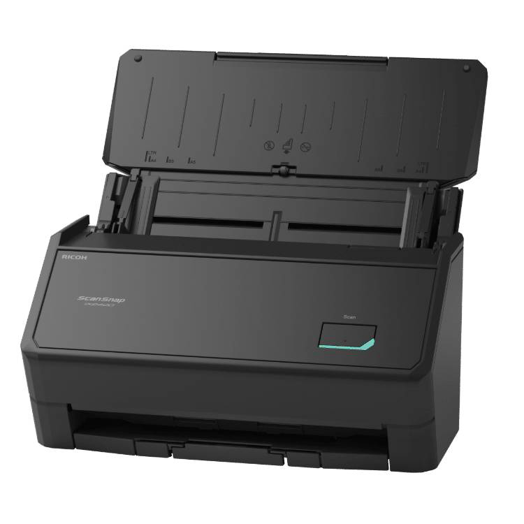 Ricoh ScanSnap iX2400 je brzi stolni A4 skener s automatskim ulagateljem od 100 listova, namijenjen za jednostavno skeniranje većih količina dokumenata jednim gumbom. Skenira obostrano do 45 stranica u minuti (90 slika/min), u boji, uz optičku rezoluciju 600 x 600 dpi i tehnologiju Dual CIS za čistu i oštru sliku. Podržava razne formate papira (A4, A5, računi, posjetnice), ima USB-A/USB-C povezivanje i radi sa ScanSnap Home softverom za lako spremanje i dijeljenje skenova. Jamstvo 36 mjeseci zamjena unaprijed (Advance Exchange), 12 mjeseci osnovno + 24 mjeseca uz besplatnu registraciju na linku https://service.pfu-emea.ricoh.com/s/login/?language=en