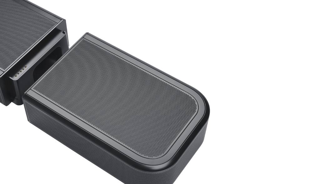 Doživite vrhunac 3D surround zvuka s očaravajućim visinskim kanalima. Šest zvučnika usmjerenih prema gore u soundbaru i bežični stražnji zvučnici pružaju pravi Dolby Atmos zvuk. Nema dodatnih žica. Nema priključaka za napajanje. Samo podignite odvojive surround zvučnike sa soundbara - možete to učiniti samo jednom rukom - i postavite ih iza mjesta gdje sjedite kako biste stvorili pravi surround zvuk. Toliko je jednostavno. Bez obzira gledate li svoju novu omiljenu emisiju u maratonu ili organizirate filmsku večer, dugotrajne baterije zvučnika znače da ćete satima uživati ??u impresivnom, kinematografskom surround zvuku. A kada završite, samo vratite zvučnike na soundbar da se napune preko noći.