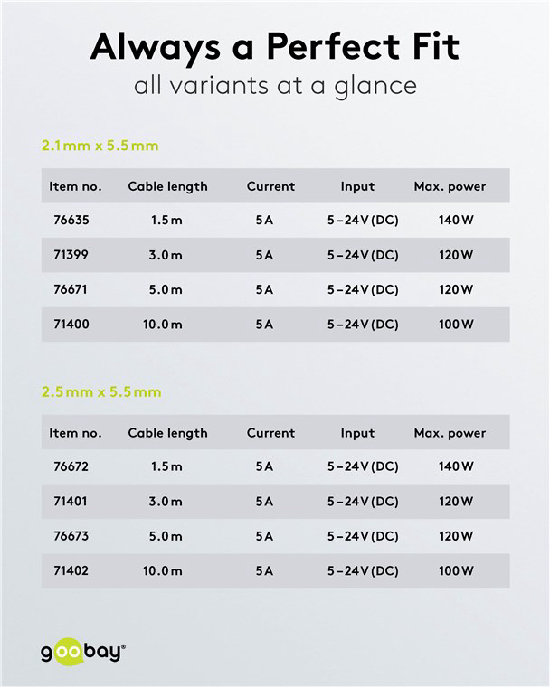 Pogodno za uređaje s 5-24 V (DC) i maks. 5 A, npr. LED svjetlosne trake, usmjerivače poput AVM Fritz!Boxa, električne igračke, vanjske tvrde diskove i nadzorne kamere