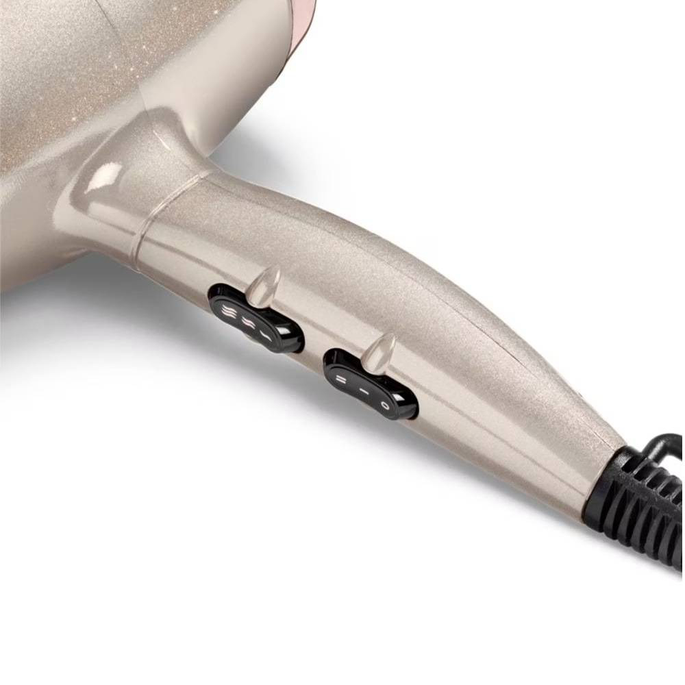 Sušilo za kosu BaByliss 5914PE snažan je uređaj za sušenje opremljen istosmjernim motorom i nudi nazivnu snagu od 2000 W. Ovaj model ističe se svojim svestranim funkcijama, omogućujući individualno prilagođavanje različitim tipovima i potrebama kose. S dvije postavke brzine i tri postavke topline, korisnici mogu prilagoditi učinkovitost i udobnost sušenja svojim željama. Sušilo za kosu ima funkciju Cool Shot koja pomaže u fiksiranju kose nakon stiliziranja i dodaje dodatni sjaj. Praktična omča za vješanje i kabel duljine 2,2 metra osiguravaju jednostavno rukovanje i fleksibilnost tijekom upotrebe.