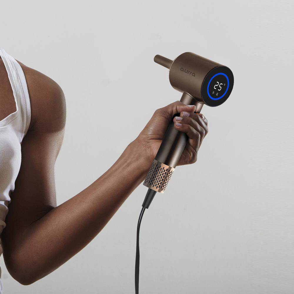 Sušilo za kosu ELIT BLDC AURRA je savršen spoj snage, tehnologije i njege za vašu kosu. Nudi visoke performanse uz izradu za brzo i učinkovito sušenje smanjenog statičkog elektriciteta za sjajniju kosu. Inovativni BLDC motor velike brzine omogućuje izuzetno snažan protok zraka za brzo i učinkovito sušenje uz minimalno oštećenje kose. Izaberite hladno, suho ili mješovito puhanje zraka. Optimalna snaga osigurava vrhunske performanse, bilo da želite brzo sušenje ili precizno oblikovanje frizure. Napredna tehnologija koja automatski izmjenjuje topli i hladni zrak tijekom sušenja pruža optimalnu njegu kosi. Toplina ubrzava proces sušenja i otvara kutikule, dok hladni zrak zatvara vlas kose, zadržava vlagu i pruža dugotrajan sjaj. Ova funkcija sprječava isušivanje, smanjuje rizik od oštećenja te pomaže u fiksiranju frizure, ostavljajući kosu glatkom, elastičnom i prirodno zdravom.