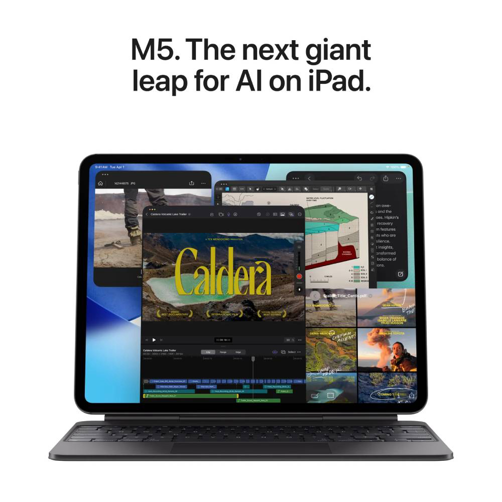 iPad Pro s čipom M5 donosi nevjerojatne performanse za besprijekornu produktivnost i napredne AI radne tokove. S prekrasnim Ultra Retina XDR zaslonom, iznimno brzim Wi-Fi 7 i 5G Cellularom, Neural akceleratorima za AI zadatke i redizajniranim iPadOS-om, ne postoje granice onome što možeš učiniti s iPadom Pro. U kombinaciji s Pencil Pro i Magic Keyboardom za iPad Pro donosi beskrajnu svestranost, kreativnost i produktivnost na tvojim prstima. Pokreći profesionalne aplikacije i obavi više s iPadOS-om 26 koji dolazi s Liquid Glass dizajnom i revolucionarnim mogućnostima. S intuitivnim i fleksibilnim sustavom prozora možeš upravljati, organizirati i kontrolirati svoj rad kao nikada prije. Pencil Pro i Pencil (USB-C) omogućuju intuitivnu i preciznu kontrolu za crtanje, bilježenje i kreativni rad. Magic Keyboard nudi udobno tipkanje i trackpad s haptičnim povratnim odzivom. iPad Pro ima vodoravnu 12MP prednju kameru Center Stage i 12MP širokokutnu kameru s adaptivnim True Tone bljeskalicom. Četiri mikrofona studijske kvalitete i četverostruki zvučni sustav pružaju bogat zvuk.