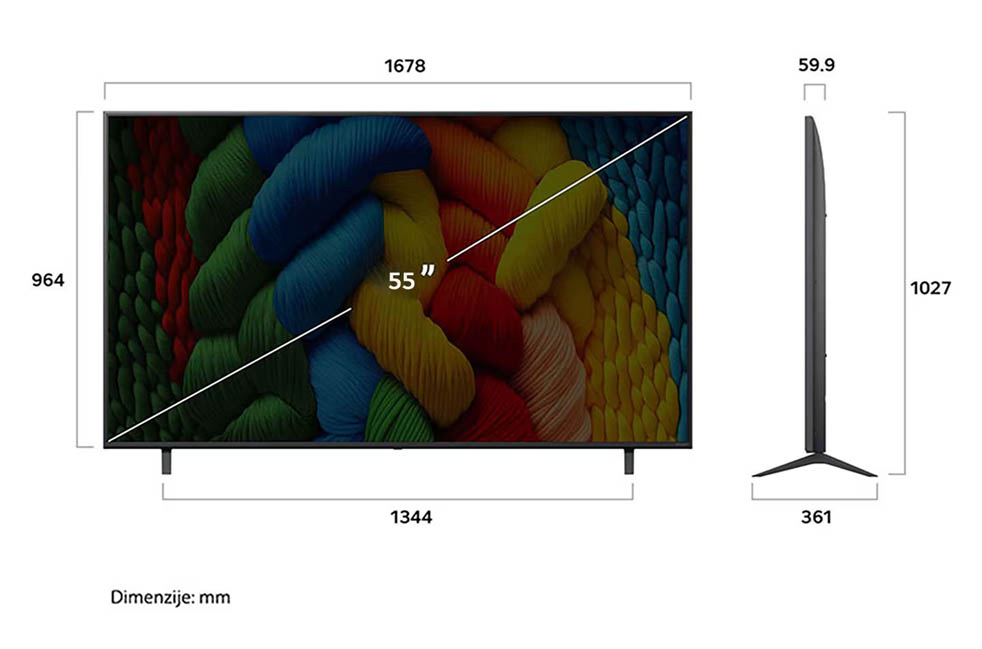 Jednostavno upravljajte LG 55NANO80A3B LED UHD 4K SMART televizorom pomoću daljinskog upravljača potpomognutog umjetnom inteligencijom AI Magic Remote - nije potreban vanjski uređaj! Jednostavne, ali snažne funkcije klikanja, povlačenja i ispuštanja čine upotrebu operativnog sustava webOS intuitivnim i jednostavnim. Snažni procesor tvrtke LG pojačava rezoluciju do izvorne kvalitete. Uživajte u 4K Super Upscaling koji poboljšava rezoluciju, osvjetljenje i jasnoću. Vaš vlastiti AI robot za čavrljanje u opciji AI Chatbot aktivno će rješavati i pomoći vam s vašim upitima. Jednostavno razgovarajte sa svojim televizorom jer on može klasificirati vaše namjere i odgovoriti u skladu s njima. Uživajte u visokoj rezoluciji zaslona velikog razmjera i vrhunskom igranju igara zahvaljujući promjenjivoj brzini osvježavanja (VRR). Pokrenite igru bez kašnjenja.
