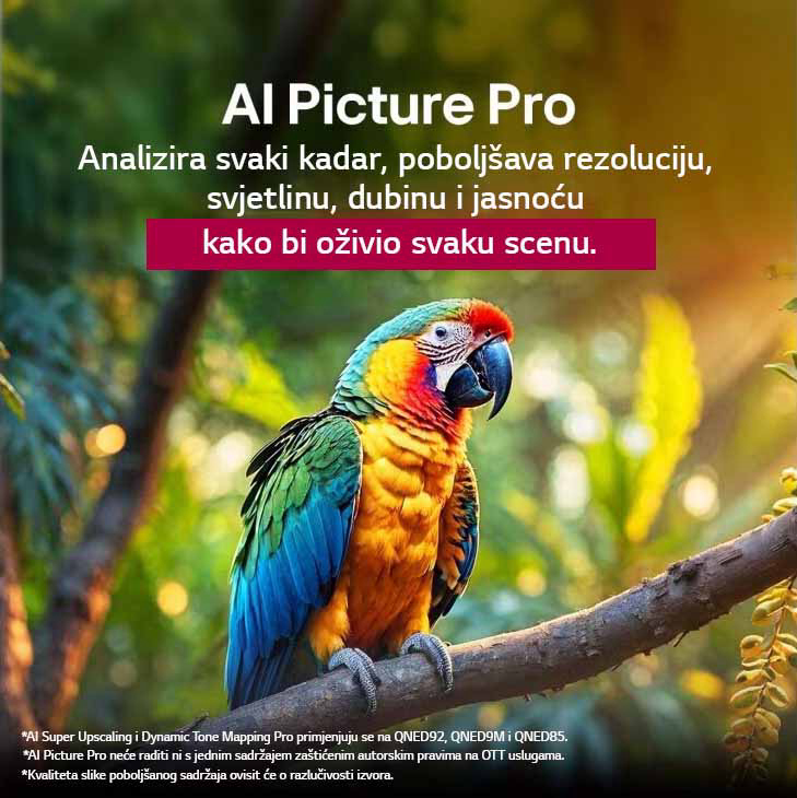 Najnovija i jedinstvena tehnologija široke palete boja ovog televizora zamjenjuje Quantum Dot i omogućuje poboljšanu brzinu prikazivanja boja. AI postupno povećanje i profesionalno dinamičko mapiranje nijansi boja analiziraju svaki element kadra i poboljšavaju rezoluciju, osvjetljenje, dubinu i jasnoću. Precizna kontrola svjetla Advanced Local Dimming omogućuje vam da jasno vidite svaki detalj. Jednostavno upravljajte televizorom pomoću daljinskog upravljača potpomognutog umjetnom inteligencijom AI Magic Remote. Uživajte u visokoj rezoluciji zaslona velikog razmjera. Tanki dizajn doprinosi rafiniranom izgledu vašeg prostora. Uživajte u vrhunskom igranju igrica s varijabilnom brzinom osvježenja 144Hz VRR. Pokrenite igru bez kašnjenja i zamućenih pokreta koji ometaju kvalitetu igre.