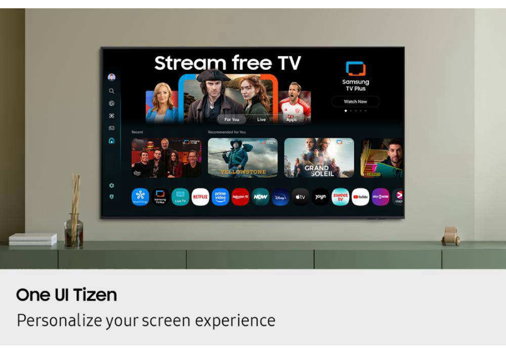 Osjetite svaku nijansu boje onako kako je zamišljeno u snažnoj 4K rezoluciji. Vidite svaku nijansu boje u punome sjaju zahvaljujući naprednom procesoru. A tu je i snažno povećavanje rezolucije na 4K koje vam omogućuje da svaki sadržaj koji volite gledate u 4K. Primijetite sitne detalje u svakoj sceni. 4K UHD rezolucija sadržava četiri puta više piksela od obične FHD rezolucije zbog čega je slika oštra i iznimno realistična. Raskošno metalno kućište ovog TV-a nadahnuto je dizajnom letjelica. Jedna metalna pločica upotrebljava za proizvodnju tankog okvira, pružajući istinski prožimajuće iskustvo. One UI Tizen korisničko sučelje pruža besprijekoran i dosljedan doživljaj na Samsung uređajima. Samsung Tizen OS operacijski sustav omogućuje vam da iskoristite najnovije inovativne Samsung značajke, kao što je brz pristup omiljenom sadržaju, praktično upravljanje s pomoću AI-ja i snažna zaštita koju pruža Samsung Knox Security. Osim toga, One UI Tizen korisničko sučelje podržava nadogradnje Tizen OS-a sljedećih sedam godina, omogućujući vam najnovije aplikacije i usluge.