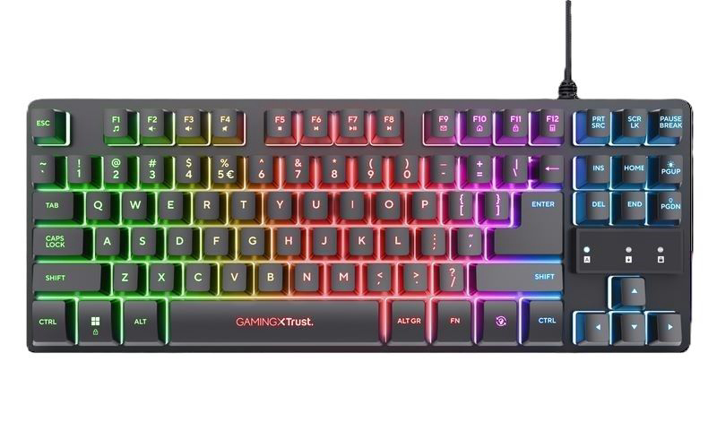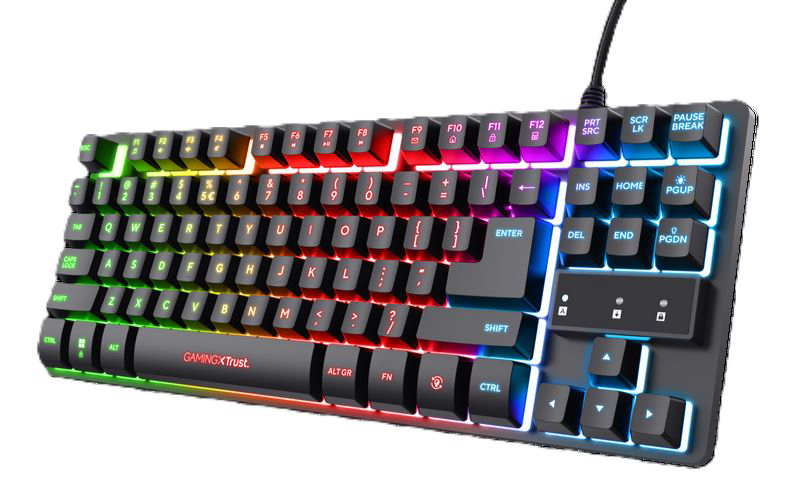 Tipkovnica TRUST GXT 833 Thado Gaming US layout nema numeričku tipkovnicu, što ju čini kompaktnijom i lakšom za ponijeti sa sobom, te zauzima 80% manje prostora od tipkovnica pune veličine. Dizajnirana je za odlično gaming iskustvo, s mogućnosti da pritisnete do 10 tipki odjednom. Gaming mode onemogućiti će Windows tipku, a noge napravljene od gume spriječiti će proklizavanje tipkovnice. Višebojno LED osvjetljenje podići će Vaše gaming iskustvo na iduću razinu.