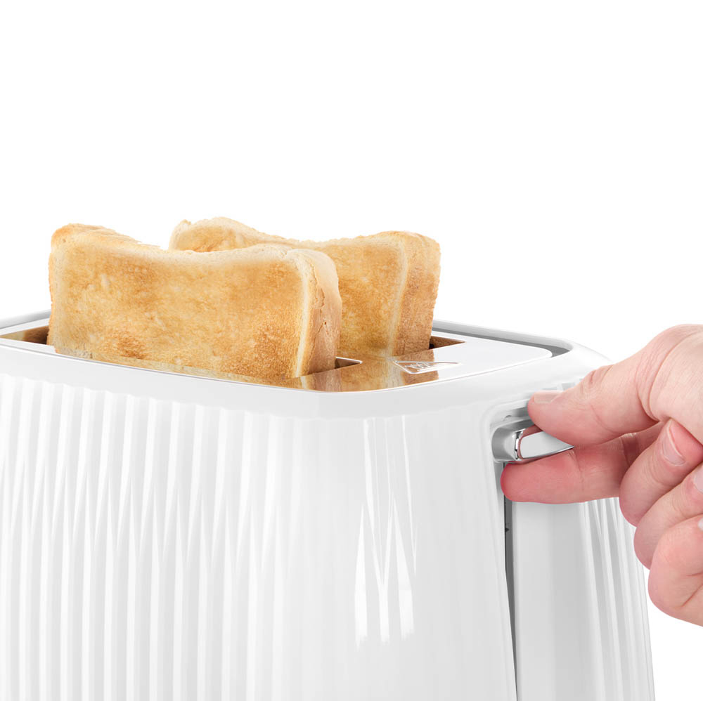 Dizajniran i za pokazivanje i za pečenje savršenog tosta, toster Russell Hobbs Eden White započet će vaše jutro sa stilom. Upečatljiva teksturirana vanjština ovog tostera uljepšat će svaku kuhinjsku radnu plohu, a sa šest postavki pečenja, rešetkom za podgrijavanje peciva, kao i funkcijama tostiranja zamrznutog kruha, podgrijavanja i prekida rada, ovaj toster ima sve što je potrebno kako biste dobili tost pečen po vašoj mjeri. A zahvaljujući opciji visokog podizanja rešetke, jednostavno i praktično možete uzeti tost ili pecivo iz toplog utora.