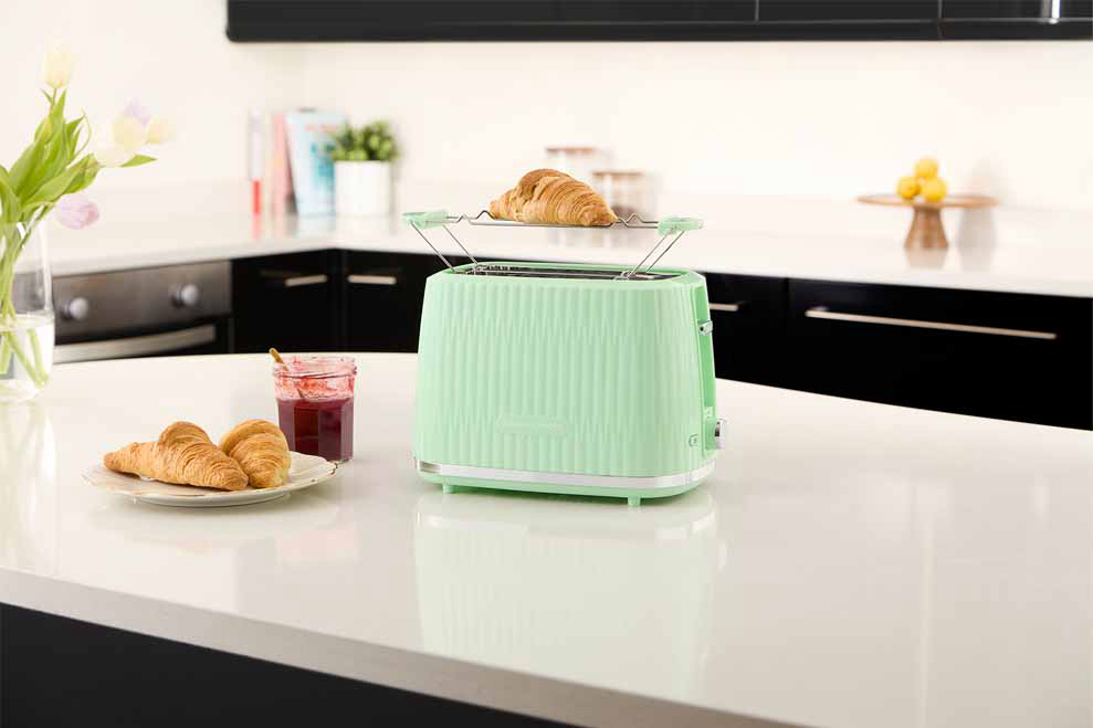 Dizajniran i za pokazivanje i za pečenje savršenog tosta, toster Russell Hobbs Eden započet će vaše jutro sa stilom. Upečatljiva teksturirana vanjština ovog tostera uljepšat će svaku kuhinjsku radnu plohu, a sa šest postavki pečenja, rešetkom za podgrijavanje peciva, kao i funkcijama tostiranja zamrznutog kruha, podgrijavanja i prekida rada, ovaj toster ima sve što je potrebno kako biste dobili tost pečen po vašoj mjeri. A zahvaljujući opciji visokog podizanja rešetke, jednostavno i praktično možete uzeti tost ili pecivo iz toplog utora.