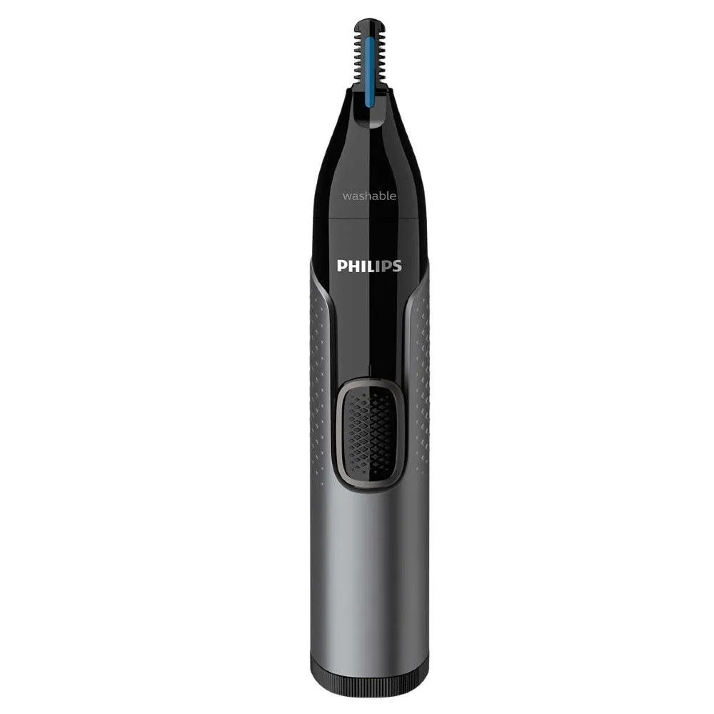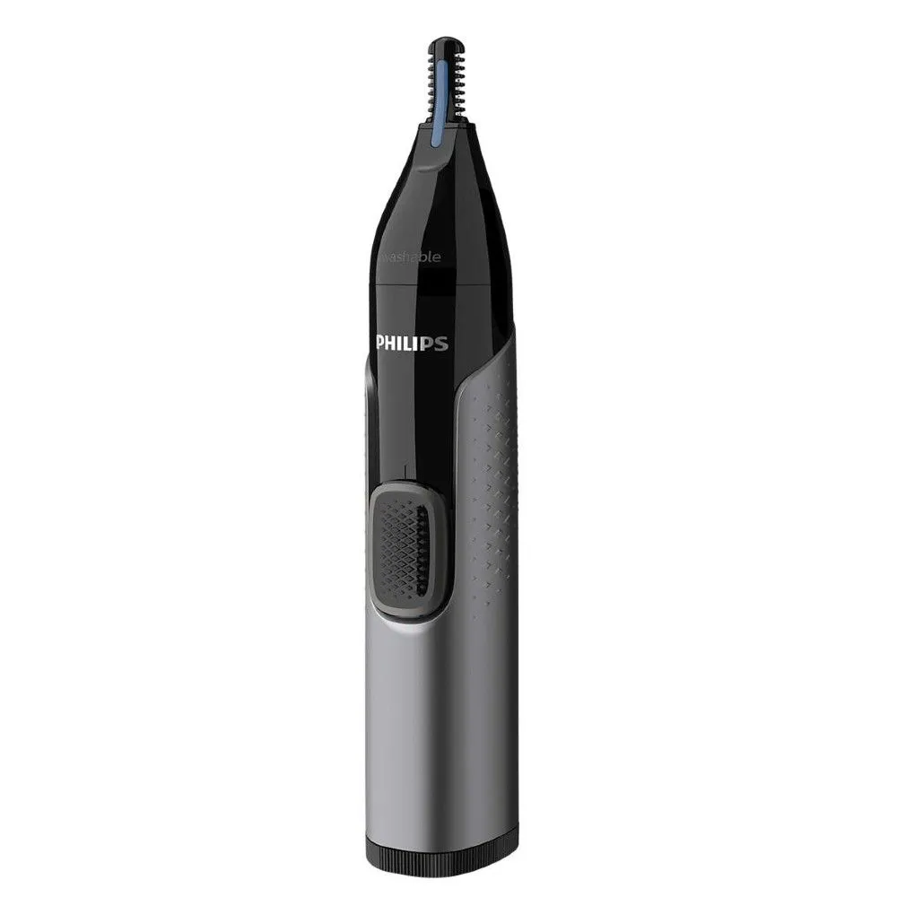 Trimer Philips NT3650/16 omogućuje vam da učinkovito dosegnete dlačice iz nosa i ušiju te vam pomaže da ih jednostavno uklonite. Trimer za nos, uši i obrve dizajniran za sigurnost i udobnost, a zaštitni sustav pokriva oštrice kako bi se osiguralo da ne dodiruju kožu izravno. Napravljen je i za što je moguće manje propuštenih dlačica, čupanja ili povlačenja. Brzo i precizno reže iz bilo kojeg kuta u bilo kojem smjeru. Drška s teksturom omogućuje bolje držanje i kontrolu prilikom upotrebe trimera, a prekidač za uključivanje/isključivanje postavljen je za jednostavno rukovanje. Trimer je vodootporan zbog čega ga je vrlo lagano i jednostavno očistiti.