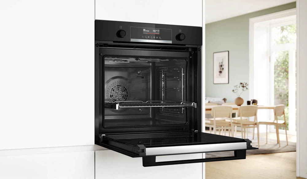 Ugradbena pećnica BOSCH HBG579EB7 dolazi sa Air Fry pladnjem, za savršeno prženu hranu, poput povrća i čipsa. Koristite Home Connect aplikaciju za daljinsko upravljanje i nadzor vaše pametne pećnice. Svako jelo ispada savršeno zahvaljujući 40 unaprijed postavljenih automatskih programa. TFT zaslon vam omogućuje jasan prikaz i jednostavno upravljanje. Ventilator 3D Hotair brzo i jednoliko raspoređuje temperaturu u cijeloj unutrašnjosti pećnice. Možete peći i dva različita jela u isto vrijeme, u istoj pećnici.