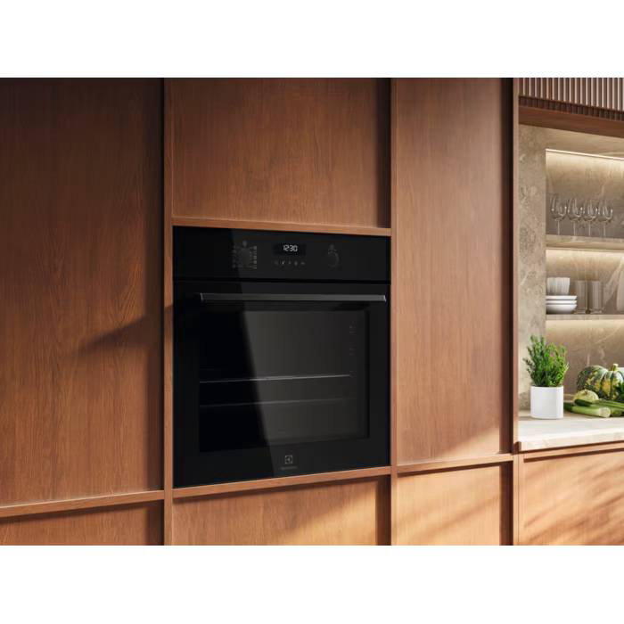 500 SurroundCook pećnica ima ventilator vrućeg zraka koji cirkulira zrak učinkovitije od obične pećnice, pa je vaša hrana uvijek ravnomjerno pečena, a pritom nije potrebno okretati pleh ni jelo. Kuhanje na više razina dodaje treći grijaći element da bi vam omogućio ravnomjerno pečenje na više razina. Savršen za pripremu tri pleha kolačića ili pita u isto vrijeme. EXPlore zaslon omogućuje vam jednostavno kontroliranje postavki svoje pećnice da biste pratili svoje kuhanje. S LED zaslonom i pet dodirnih gumba možete jednostavno vidjeti vrijeme, temperaturu i napredak vašeg jela. Pomoću visokih temperatura, funkcija pirolitičkog čišćenja pretvara masnoću i ostatke hrane u pepeo da biste ih vlažnom krpom lakše obrisali. Sustav Even Cooking pokreće cirkuliranje topline u cijeloj pećnici za ujednačeno pečenje. Sve bez potrebe za okretanjem jela. Naša tehnologija znači da se pećnica brže zagrijava štedeći vrijeme i energiju. Funkcija „Brzo zagrijavanje“ osigurava da je pećnica sprema kada ste i vi. Uz kraće vrijeme prethodnog zagrijavanja u usporedbi s konvencionalnim grijanjem te dodatne trenutke možete pretvoriti u nezaboravna jela.