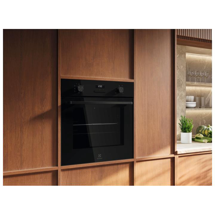 Konvekcijska pećnica 300 zagrijava se brže od obične pećnice. Hrana se brzo i ravnomjerno kuha zahvaljujući dizajnu ventilatora koji ravnomjerno raspoređuje toplinu u pećnici i osigurava da vaša hrana bude pečena sa svih strana. Sustav Even Cooking pokreće cirkuliranje topline u cijeloj pećnici za ujednačeno pečenje. Sve bez potrebe za okretanjem jela. Naša tehnologija znači da se pećnica brže zagrijava štedeći vrijeme i energiju. Uz AquaClean, pećnica iskorištava snagu vlažnosti za čišćenje bez agresivnih kemikalija. Prvo, AquaClean isparava vodu na dnu pećnice. Para zatim omekšava tvrdokorne naslage masnoće i ostatke da biste mogli lako postići prirodno čišćenje. SET funkcija pruža vođenu i preciznu kontrolu vremena postupka pripreme na zaslonu. Lako postavite odgođeno pokretanje ili završetak kuhanja.