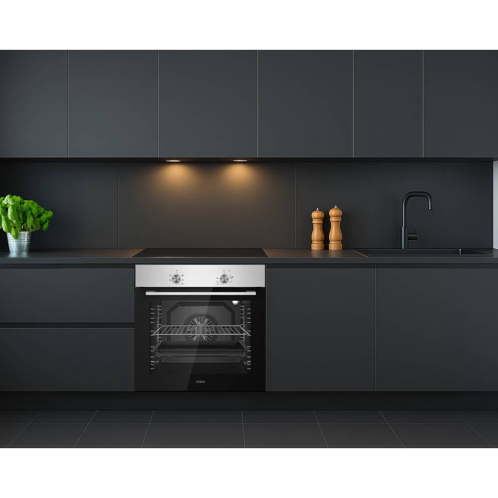 VIVAX HOME ugradbena pećnica BO-806BFM X pruža pouzdane performanse i moderan inox dizajn, uz kapacitet od 80 litara i ventilatorski sistem koji osigurava ravnomjerno raspoređivanje topline i učinkovito pečenje. S 6 različitih programa, temperaturnim rasponom od 40°C do 240°C i snagom od 2300 W, idealna je za pripremu širokog spektra jela. Opremljena je pop-up gumbima za jednostavno upravljanje te sigurnosnom funkcijom zaključavanja za djecu (Child lock) za dodatnu sigurnost. Energetski razred A jamči učinkovitu potrošnju električne energije, dok standardne dimenzije 59,5 x 57,5 x 59,5 cm omogućuju lako uklapanje u svaku suvremenu kuhinju, čineći ovu pećnicu pametnim i estetski privlačnim izborom za svakodnevnu upotrebu.