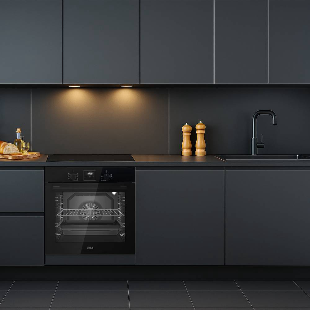VIVAX HOME ugradbena pećnica BO-808BFD G donosi snažne performanse i moderan dizajn s crnim staklom, zapreminom od 80 litara i ventilatorskim sistemom za ravnomjerno pečenje na više nivoa. Sa 7 različitih programa rada, temperaturnim rasponom od 40°C do 240°C i snagom od 2300 W, idealna je za sve vrste pripreme hrane – od laganog dizanja tijesta do intenzivnog pečenja. Digitalni tajmer, pop-up gumbi i sigurnosna funkcija zaključavanja za djecu osiguravaju jednostavno i sigurno korištenje, dok energetski razred A garantira ekonomičnu potrošnju. Zahvaljujući standardnim dimenzijama (59,5 x 57,5 x 59,5 cm), lako se uklapa u svaku modernu kuhinju i postaje neizostavan pomoćnik u svakodnevnom kuhanju.