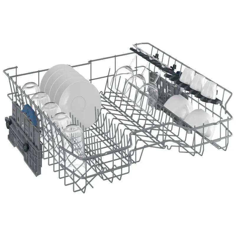 Beko BDIN25324 je ugradbena perilica posuđa koja donosi visoku učinkovitost i praktičnost u svako kućanstvo. S kapacitetom od 15 kompleta posuđa i tihim radom od samo 45 dB, idealna je za veće obitelji. Zahvaljujući funkcijama Quick&Shine i SelfDry, posuđe će biti savršeno čisto i suho u kraćem vremenu, dok automatsko otvaranje vrata nakon ciklusa poboljšava rezultate sušenja. Energetski razred D osigurava manju potrošnju energije, a treća košara i podesiva gornja polica omogućuju jednostavno slaganje i većih komada posuđa. S elegantnim dizajnom i pouzdanim performansama, ova perilica savršeno se uklapa u svaku modernu kuhinju.