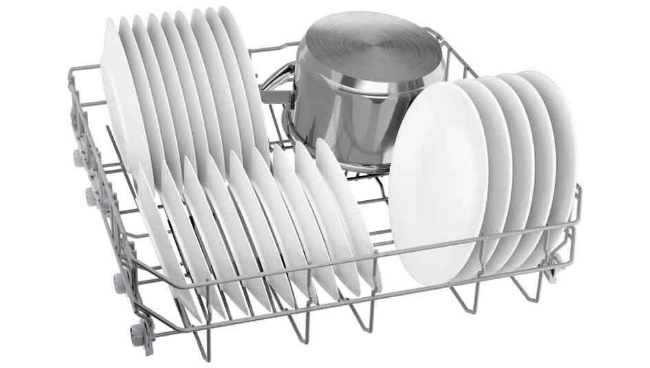 Ugradbena perilica posuđa BOSCH SMV25EX06F dolazi s Reckmatic košarom koja se može podešavati po visini na tri razine. Također, ladica VarioDrawer vam nudi dodatnu razinu na vrhu perilice. Info Light projicira crveno svjetlo na pod tijekom ciklusa pranja, pa uvijek znate kada vaša perilica posuđa radi. DosageAssist osigurava optimalne rezultate čišćenja i tiše pranje. Deterdžent kaplje iz pretinca za sredstvo za pranje na posebni pladanj na gornjoj košari gdje se do kraja otapa.