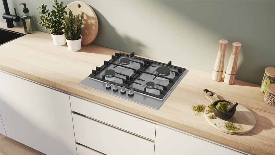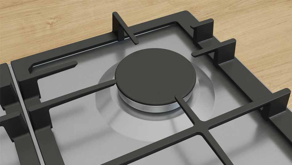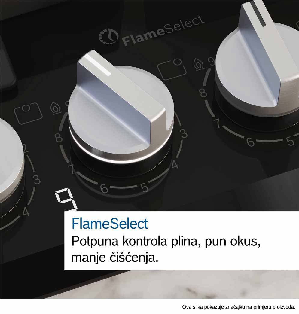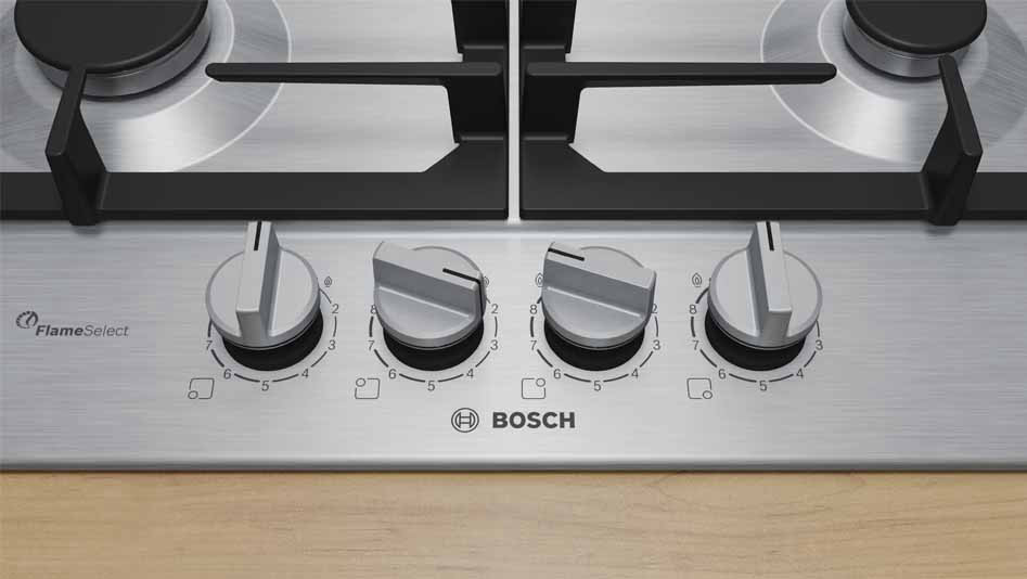 Ugradbena plinska ploča BOSCH PCP6A5I90 ima FlameSelect ploču za kuhanje na kojoj možete birati između devet precizno definiranih razina snage plamena. Jednostavno i pouzdano prilagodite temperaturu kako biste uvijek dobili jednake rezultate sotiranja ili nježnog pirjanja i savršeno pripremljena jela. Optimizirani dizajn površine omogućuje lako čišćenje, gumbi se mogu skinuti, a nosači posuda su perivi u perilici. Plinski plamenici imaju značajku sigurnosnog isključivanja plina.