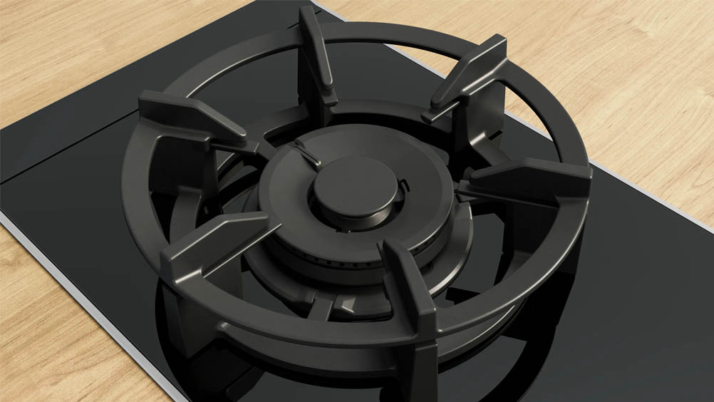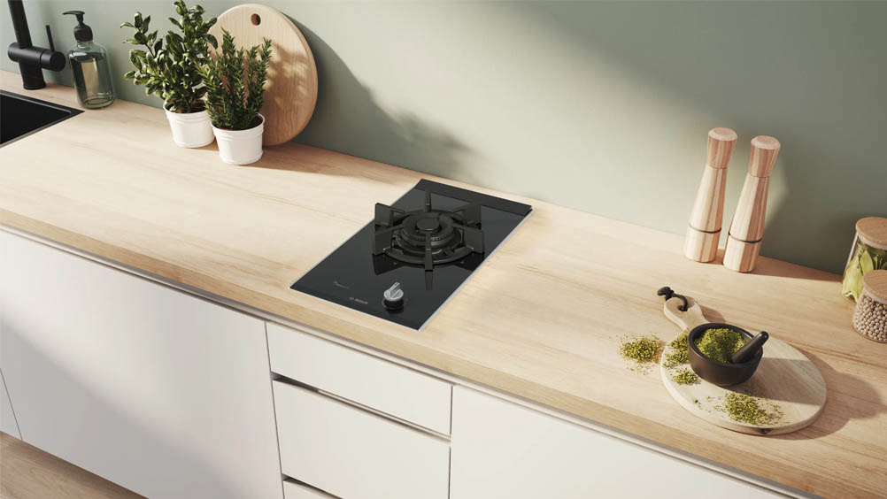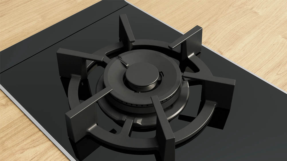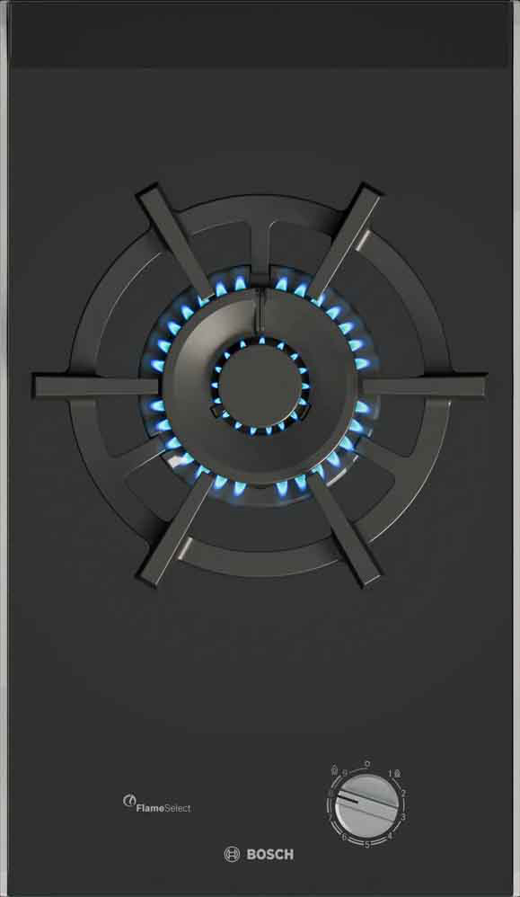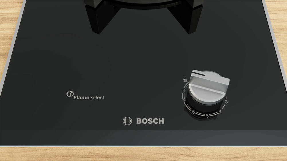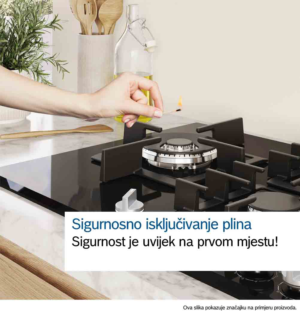 Ugradbena plinska ploča BOSCH PRA3A6I10 ima FlameSelect ploču za kuhanje na kojoj možete birati između devet precizno definiranih razina snage plamena. Jednostavno i pouzdano prilagodite temperaturu kako biste uvijek dobili jednake rezultate sotiranja ili nježnog pirjanja i savršeno pripremljena jela. Optimizirani dizajn površine omogućuje lako čišćenje, gumbi se mogu skinuti, a nosači posuda su perivi u perilici. Plinski plamenici imaju značajku sigurnosnog isključivanja plina. Ova plinska ploča dolazi s plamenikom za wok od 6 kW koji je savršen kad želite da voda proključa brzo za tjesteninu, ali i prilagođen da održi blagu temperaturu kuhanja umaka ili jelo toplim.