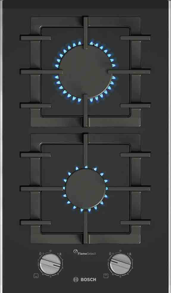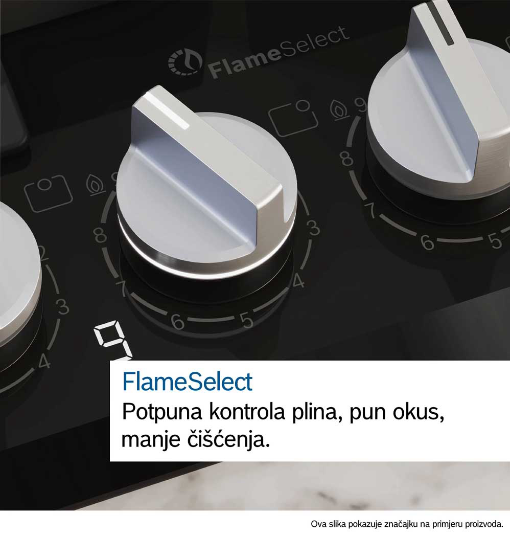 Ugradbena plinska ploča BOSCH PRB3A6I40 ima FlameSelect ploču za kuhanje na kojoj možete birati između devet precizno definiranih razina snage plamena. Jednostavno i pouzdano prilagodite temperaturu kako biste uvijek dobili jednake rezultate sotiranja ili nježnog pirjanja i savršeno pripremljena jela. Optimizirani dizajn površine omogućuje lako čišćenje, gumbi se mogu skinuti, a nosači posuda su perivi u perilici. Plinski plamenici imaju značajku sigurnosnog isključivanja plina.