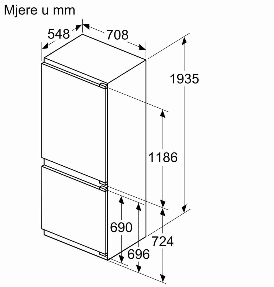 Ugradbeni kombinirani hladnjak/zamrzivač BOSCH KBN96ADD0