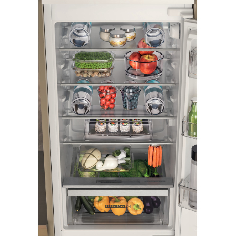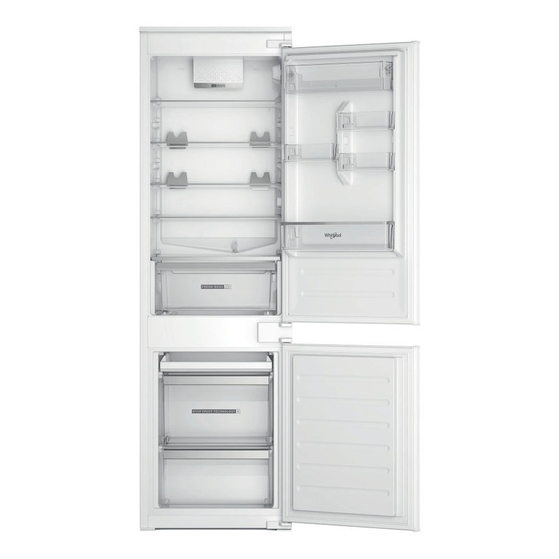 Whirlpool ugradbeni hladnjak sa zamrzivačem odlikuju bijela boja, staklene police s profilnim pročeljima koje pružaju robusnost, eleganciju i dodatnu sigurnost. Whirlpool Space Management Suite sustav je koji maksimizira kapacitet za pohranu vašeg hladnjaka. Uključuje značajke kao što su fleksibilne police, svestrane ladice i pokretne balkone u vratima koji se mogu lako prilagoditi kako bi odgovarali većim predmetima, visokim bocama i glomaznim spremnicima. Tehnologija 6TH SENSE koristi posebne senzore za otkrivanje promjena u razinama temperature unutar hladnjaka. Bilo da brzo otvorite vrata kako biste zgrabili zalogajčić ili pospremili veliku količinu namirnica nakon kupovine, ona automatski vraća pravu temperaturu, osiguravajući da se hrana drži u najboljim uvjetima.