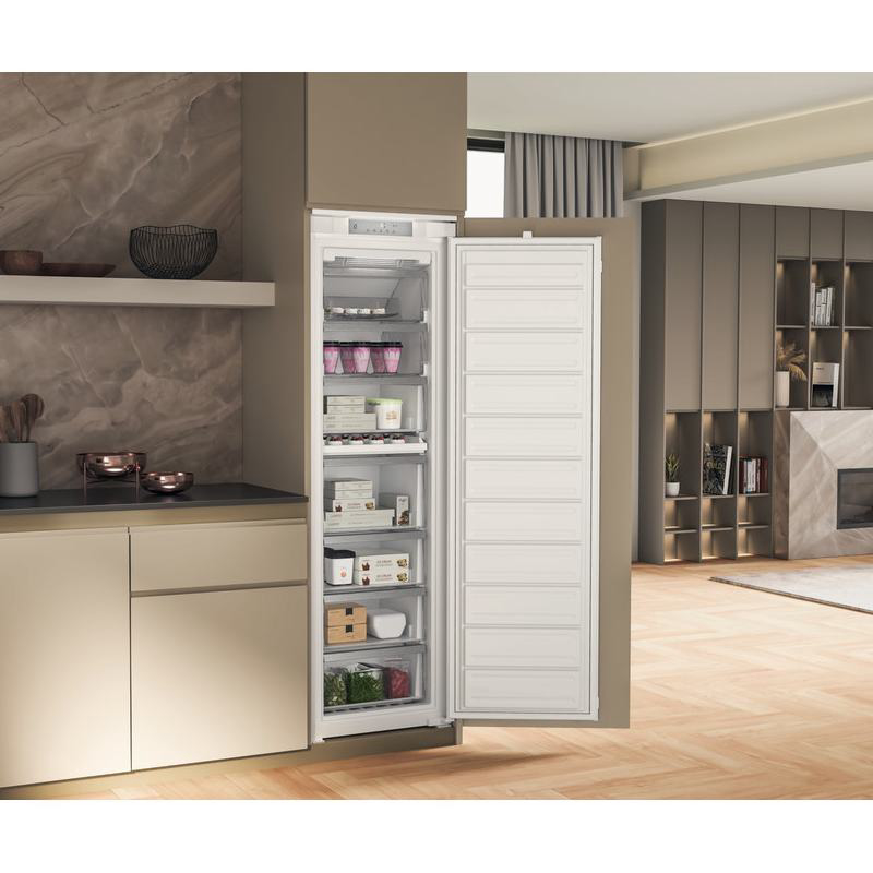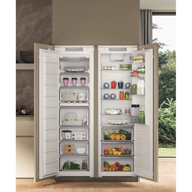 Ugradbeni zamrzivač Whirlpool WHSD18F073C1 osmišljen je za sigurno i dugotrajno čuvanje hrane uz minimalno održavanje. 6TH SENSE FreezeControl tehnologija pomaže stabilizirati temperaturu nakon otvaranja vrata i smanjuje rizik od djelomičnog odmrzavanja. Fast Freeze funkcija brzo snižava temperaturu kako bi se svježina i tekstura namirnica bolje očuvale. Alarm temperature upozorava na neželjene promjene i pruža dodatnu sigurnost pri dugotrajnom čuvanju. NoFrost tehnologija sprječava nakupljanje leda, pa su ladice lako pokretne i prostor se bolje iskorištava. Ugradbeni format omogućuje uredno spremanje zaliha bez opterećenja prostora. Stabilni uvjeti čuvanja pomažu očuvati kvalitetu hrane kroz dulje razdoblje, idealno za planiranje obroka unaprijed.