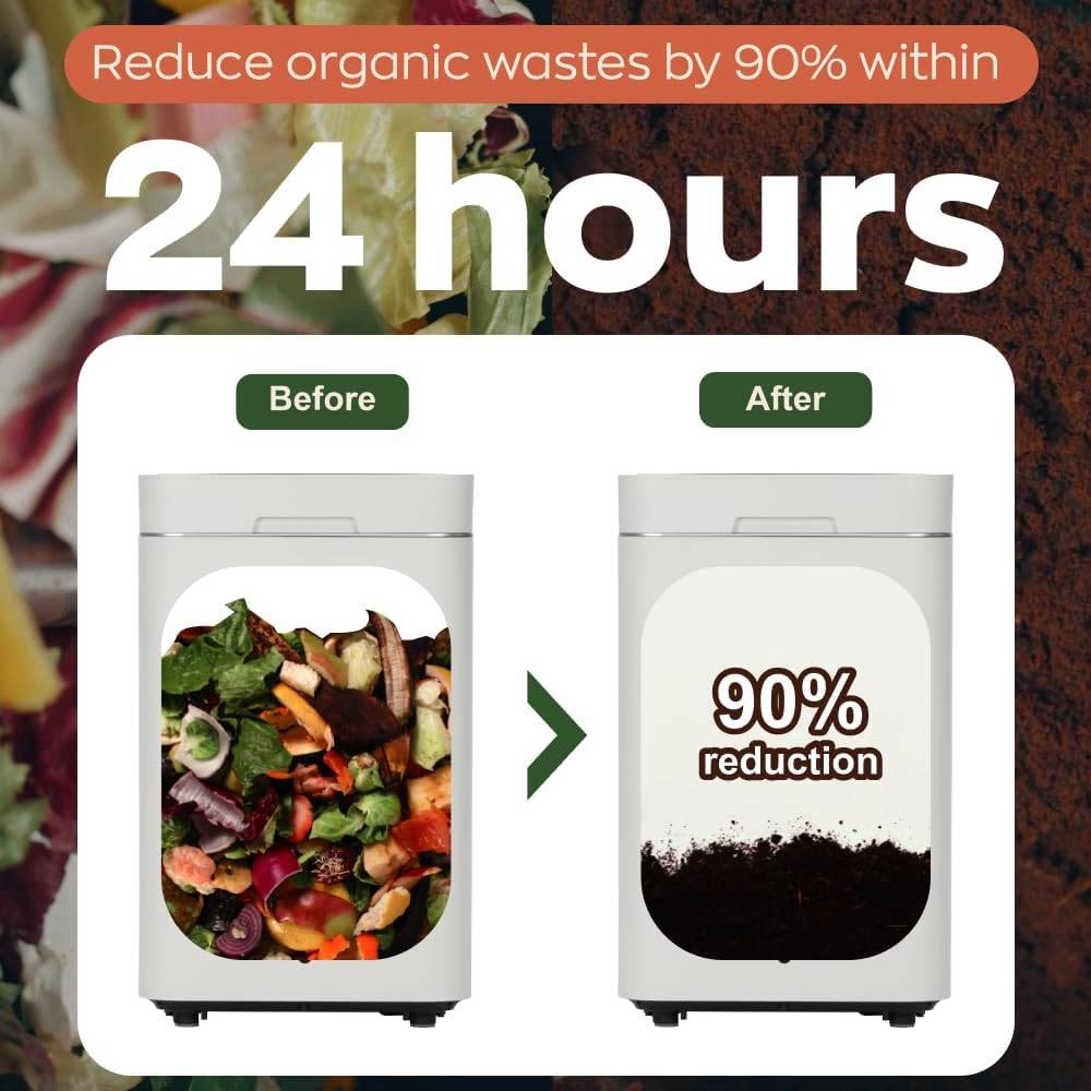 Reencle Gravity je nova generacija električnog kućnog kompostera dizajniran da još brže i učinkovitije pretvara vaše ostatke od pripreme i konzumacije hrane u hranjivi kompost – bez neugodnih mirisa. Idealan je za kućanstva svih veličina, koristi napredne mikroorganizme i pametne senzore za jednostavno i održivo kompostiranje unutar vašeg doma. Prihvatljivi ostaci hrane: Reencle može razgraditi hranu koju ljudi i životinje mogu probaviti: voće, povrće, kuhano i pečeno meso, riba, tjestenina, žitarice, kruh, kolači, krekeri, kuhana jaja. Preporučuje se izrezivanje vlaknaste hrane na manje komade, poput kore pizze, kore lubenice, kupusa, batata i kukuruza, kako bi se olakšala razgradnja.