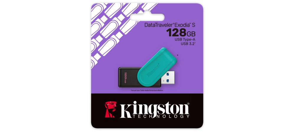 Kingston DataTraveler Exodia S je osnovno USB 3.2 Gen 1 kompatibilno rješenje za pohranu podataka za prijenosna računala, stolna računala i druge digitalne uređaje. DT Exodia S omogućuje jednostavan prijenos i praktično pohranjivanje dokumenata, videozapisa, glazbe i još mnogo toga. S kapacitetom do 512 GB, DT Exodia S ima rotirajući poklopac dostupan u raznim bojama. Njegov dizajn čini ga praktičnim rješenjem za pohranu u pokretu za posao, školu ili dom.