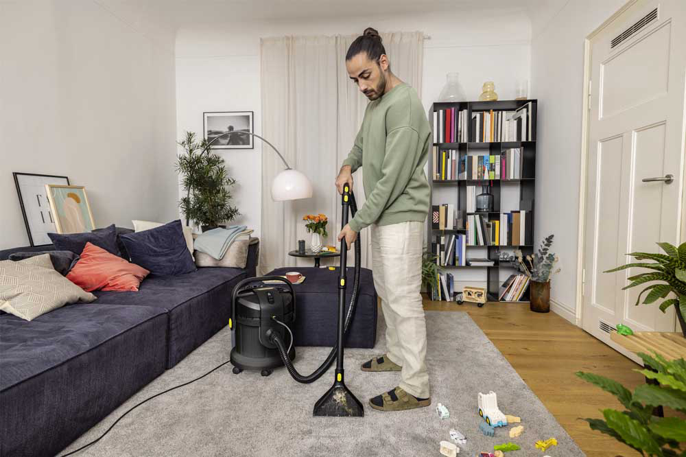 SE 4 Go!Further, izrađen je od 25 posto reciklirane plastike s ekskluzivnim priborom, nudi najbolje rezultate čišćenja i visoku razinu praktičnosti. Provjerena tehnologija ekstrakcije raspršivačem tvrtke Kärcher pruža najbolje rezultate čišćenja: svježa voda iz slavine i Kärcher sredstvo za čišćenje tepiha RM 519 raspršuju se duboko u tekstilna vlakna pod tlakom, a zatim se ponovno usisavaju zajedno s olabavljenom prljavštinom – idealno za obitelji, alergičare i kućanstva s kućnim ljubimcima. Uređaj je višenamjenski 3-u-1 proizvod, koji također funkcionira kao potpuno opremljeni usisavač za mokro i suho čišćenje. Veliki prozirni spremnik za svježu vodu od 4 litre otporan je na udarce i može se ukloniti, što olakšava punjenje i pražnjenje. Ručka za nošenje 3-u-1 dizajnirana je kako bi nošenje, otvaranje, zatvaranje i pražnjenje spremnika bilo bez problema. Isporučeni pribor može se uredno spremiti na samom uređaju. Uređaj se lako čisti nakon upotrebekako bi se osigurala duga vijek trajanja proizvoda.