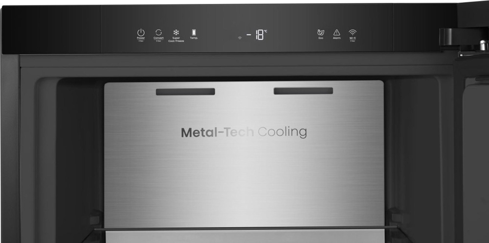 Hisense FT5K310GSFD ima bottom cooling system koji usisava zrak s lijeve strane i izbacuje ga s desne stvarajući vjetrovitu cirkulaciju zraka. Uz SmartConnectivity osiguravate svježinu hrane jednostavnim namještanjem postavki temperature hladnjaka bilo gdje pomoću WiFi aplikacije na telefonu. Stražnja stjenka hladnjaka obložena je nehrđajućim čelikom, koji osigurava ravnomjernu raspodjelu hladnog zraka iznutra prema van. S dubinom od samo oko 60 cm, ovaj proizvod je dizajniran da stane u gotovo svaki kuhinjski prostor bez kompromisa. Pomoću funkcije pretvorbe pretvorite svoj Hisense hladnjak u hladnjak ili zamrzivač. Jednostavno prilagodite svoj prostor za pohranu i rasporedite svježu hranu u idealno okruženje na temelju vlastitih potreba.
