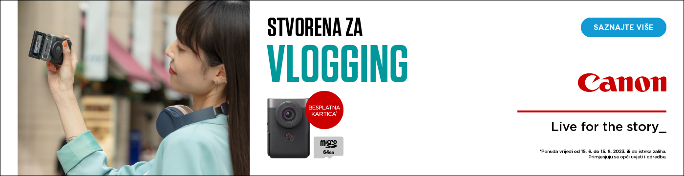 Kreirajte 4K vlogove s odgovarajućim zvukom uporabom Canonove svestrane džepne kamere, savršene za vlogging, koja je spremna za rad za nekoliko sekundi. Uz novu kameru PowerShot V10 dobit ćete besplatno microSDXC od 64 GB.