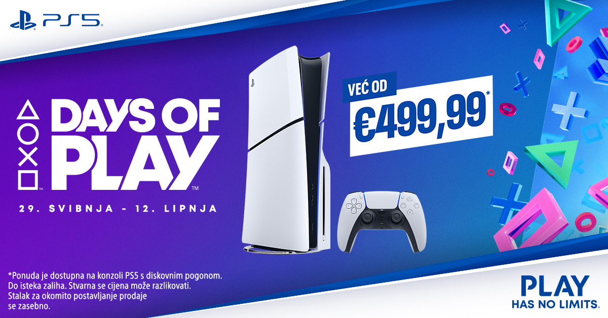 Proslavi s nama igru uz PlayStation Days Of Play i odlične cijene PlayStation 5 konzola, PlayStation VR2 konzola, Dualsense upravljača i vrhunskih igara!
