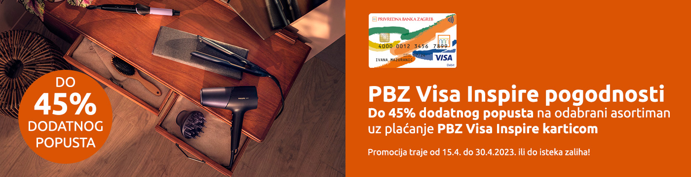 Za plaćanje PBZ Visa Inspire karticom ostvarite do 45% dodatnog popusta na odabrani asortiman proizvoda. Popust vrijedi i na akcijske cijene.
