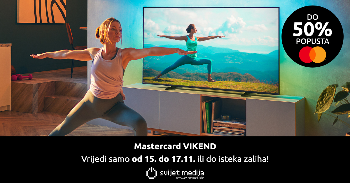 Uz Mastercard kartice ostvarite do 50% popusta na odabrani asortiman. Ostvarite do 50% popusta na Samsung, Sony, LG, Philips, Loewe i Sonos odabrane televizore te soundbar uređaje. Ostvarite dodatne popuste uz Mastercard na JBL, Sony, Marshall, Sonos i Philips odabrane Bluetooth zvučnike te slušalice. Također, dodatno uštedite s Mastercardom na odabrane gamerske slušalice i audio sustave velike snage i ostali odabrani asortiman.