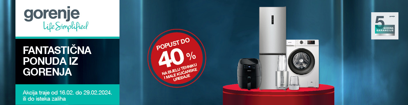 Ostvarite do 40% popusta na odabrani asortiman Gorenje kućanskih aparata uz promo kod*!