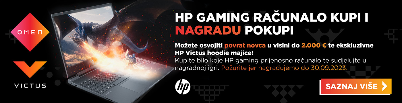 Kupite bilo koje HP gaming prijenosno računalo i do kraja rujna sudjelujte u nagradnoj igri. Troje najsretnijih očekuje povrat novca za kupljeno računalo, a čak 50 dobitnika očekuju Victus hoodie majice.