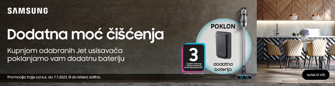 Kupnjom moćnog Samsung Jet usisavača dobivate dodatnu bateriju na poklon