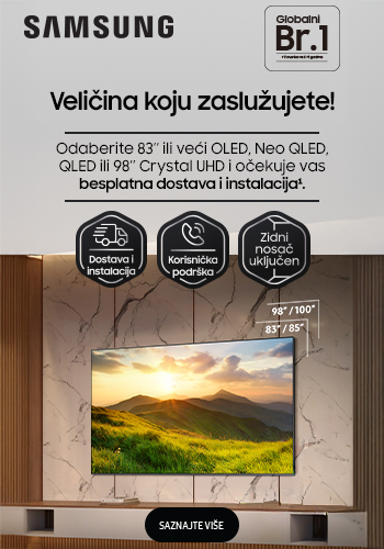 *Najveća vrijednost paketa pogodnosti koja se može ostvariti prikazana je na primjeru sudjelovanja u promocijama iz paketa pogodnosti uz kupnju modela televizora 98QN90F. Broj vaučera za Art Store promociju je ograničen.
